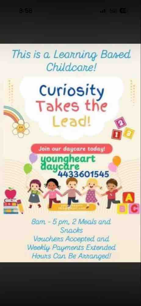 I am a licensed child care provider with over 15 years experience located 3 minutes from Morgan state university this is a learning base childcare program. Evenings can be arranged meals, snacks and outdoor activities.